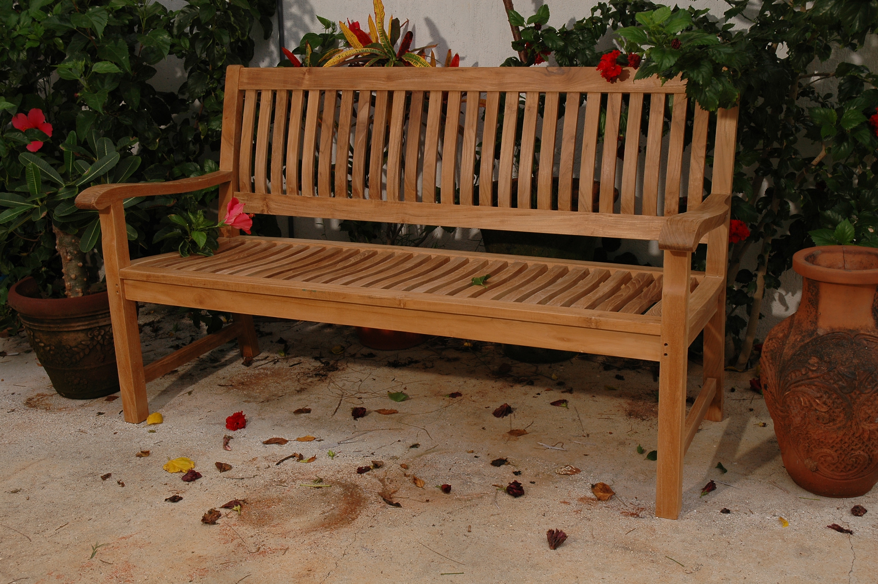 The Del-Amo 3-Seater Bench is a spacious and quality built teak outdoor bench perfect for the yard or patio. With contoured seating and curved back support, we have made subtle but careful design changes to ensure an excellent and comfortable seating experience. Place a single bench under a tree, or use a group of benches and chairs for a complete outdoor collection. The durable teak construction of this heavyweight bench allows it to withstand constant use, making it ideal for parks, shopping centers, or any commercial heavily frequented area. Over time, the wood will weather to a beautiful silver gray patina or occasionally scrub down with soap and water to keep in pristine condition. Made from genuine grade teak, it is sanded smooth without any finish in its natural form and color.