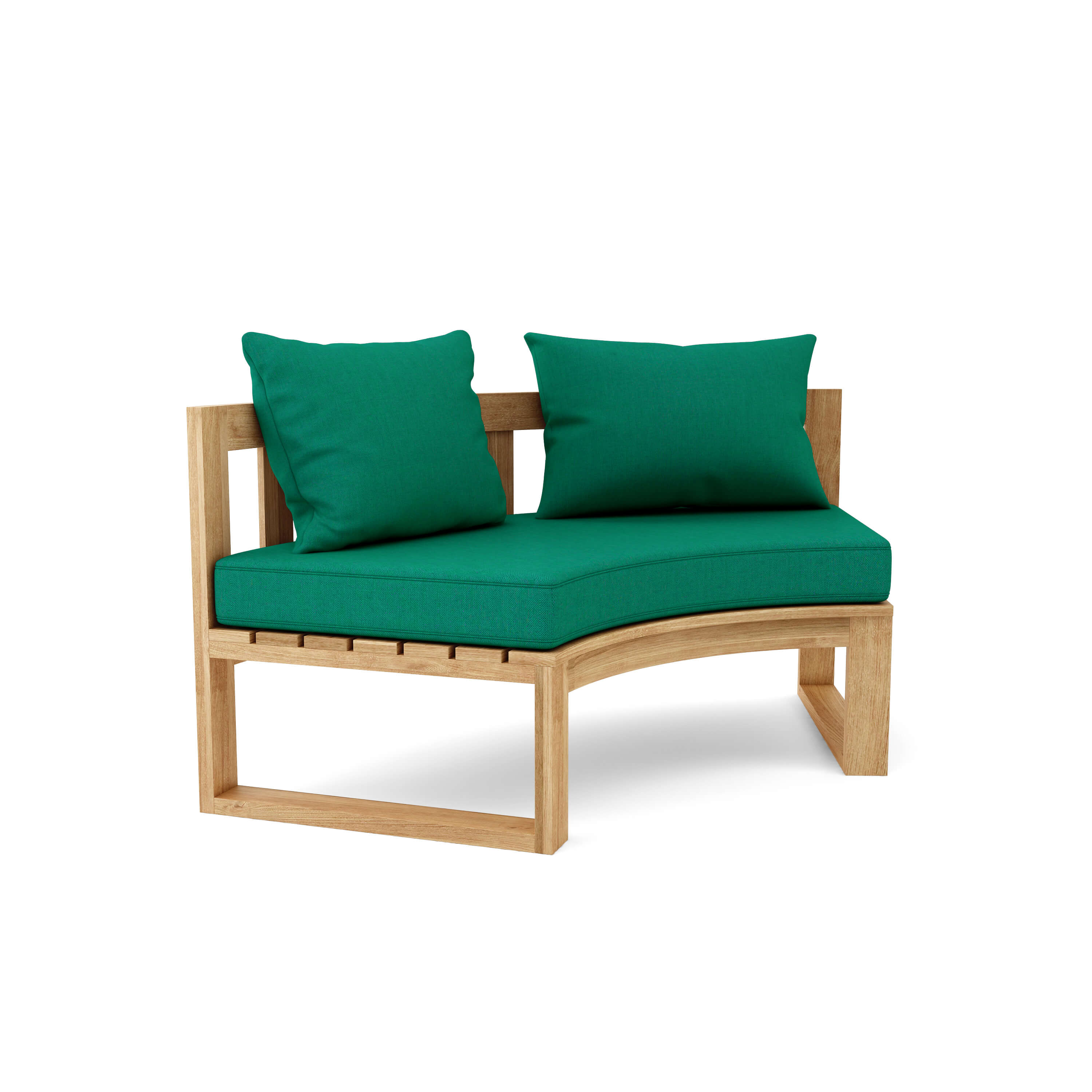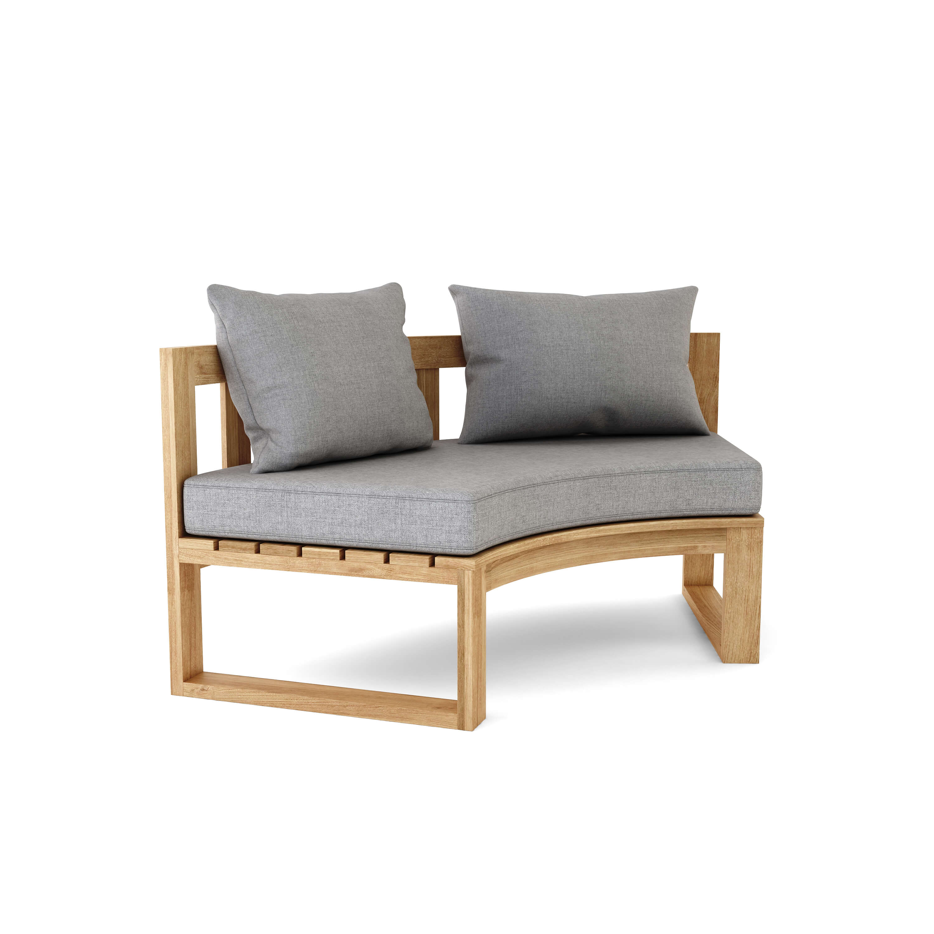 Perfect for commercial and public use, the Circular Modular Bench is also the ideal deep seating set for the home, yard and outdoors. Featuring three Benches that seat two, one Circular Planter and a Round Side Table, the set is made of premium grade unfinished teak that’s sanded smooth for a clean natural finish. Add additional pieces to the set such as the Straight Bench, or a Straight Side Table which can be placed on either the edges or the middle of the set. Mix and Match different styles and layouts such as a “C” shape, an “S” shape with seats facing away from another, or a fully circular layout. The possibilities are endless the choice yours. Includes 5.5” thick All-Weather Sunbrella cushions and pillows with your choice of color.