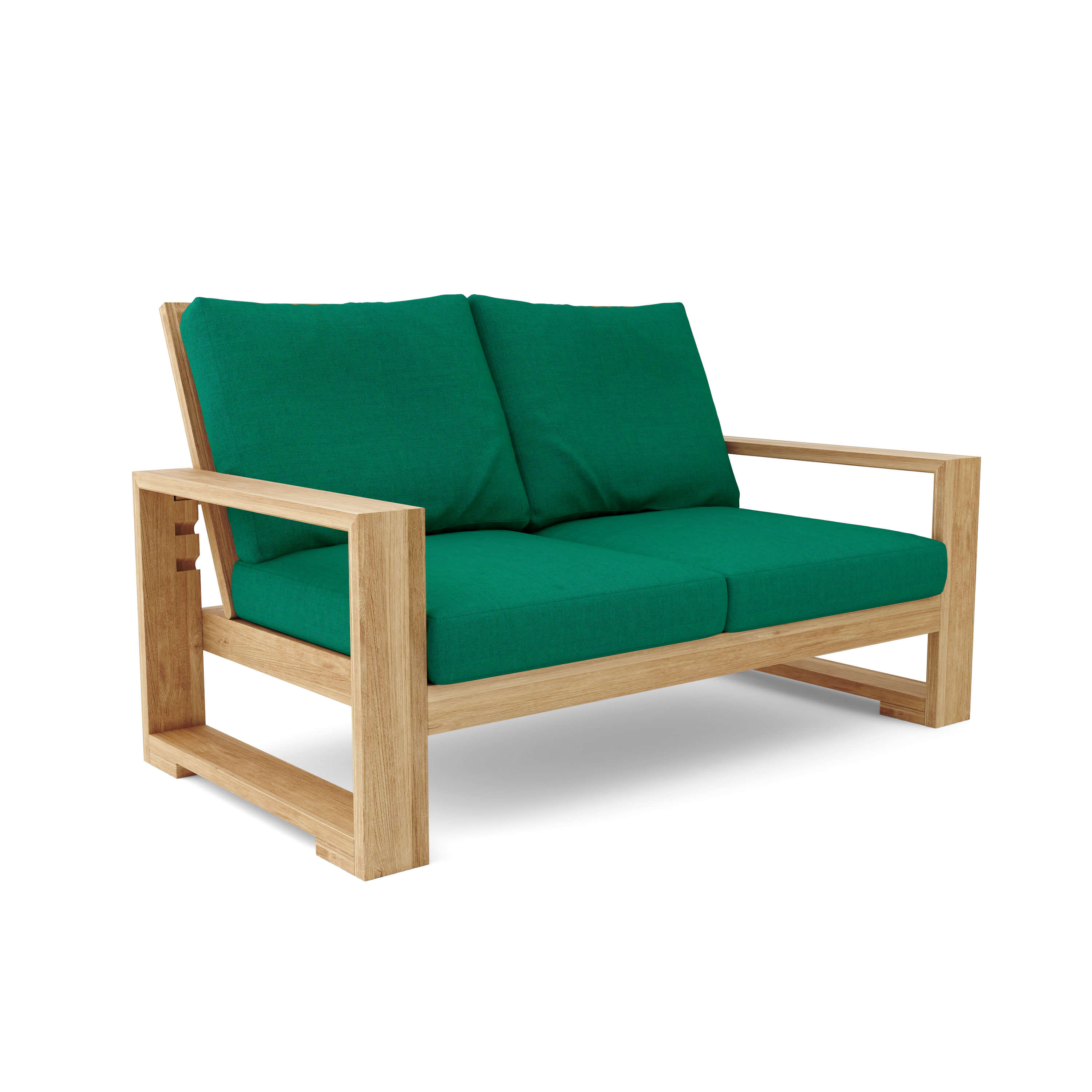 The Capistrano Deep Seating Loveseat comfortably sits two and is the perfection addition for your backyard or inside your home. With its spaciously modern, elegant, and comfortable teak design, you can be sure to entertain guests, family, and friends over a good time. Add other pieces from the collection such as ottomans, coffee tables, or mix and match with the Capistrano Armchair, Capistrano Sofa, and the Capistrano Side Table. Arrives with Sunbrella Cushions 6" thick made to last outdoors without mildew and minimal discoloration, it arrives knocked down with easy assembly. Back support easily adjustable to four positions. Please consult with your Sales Representative for cushion color choice.