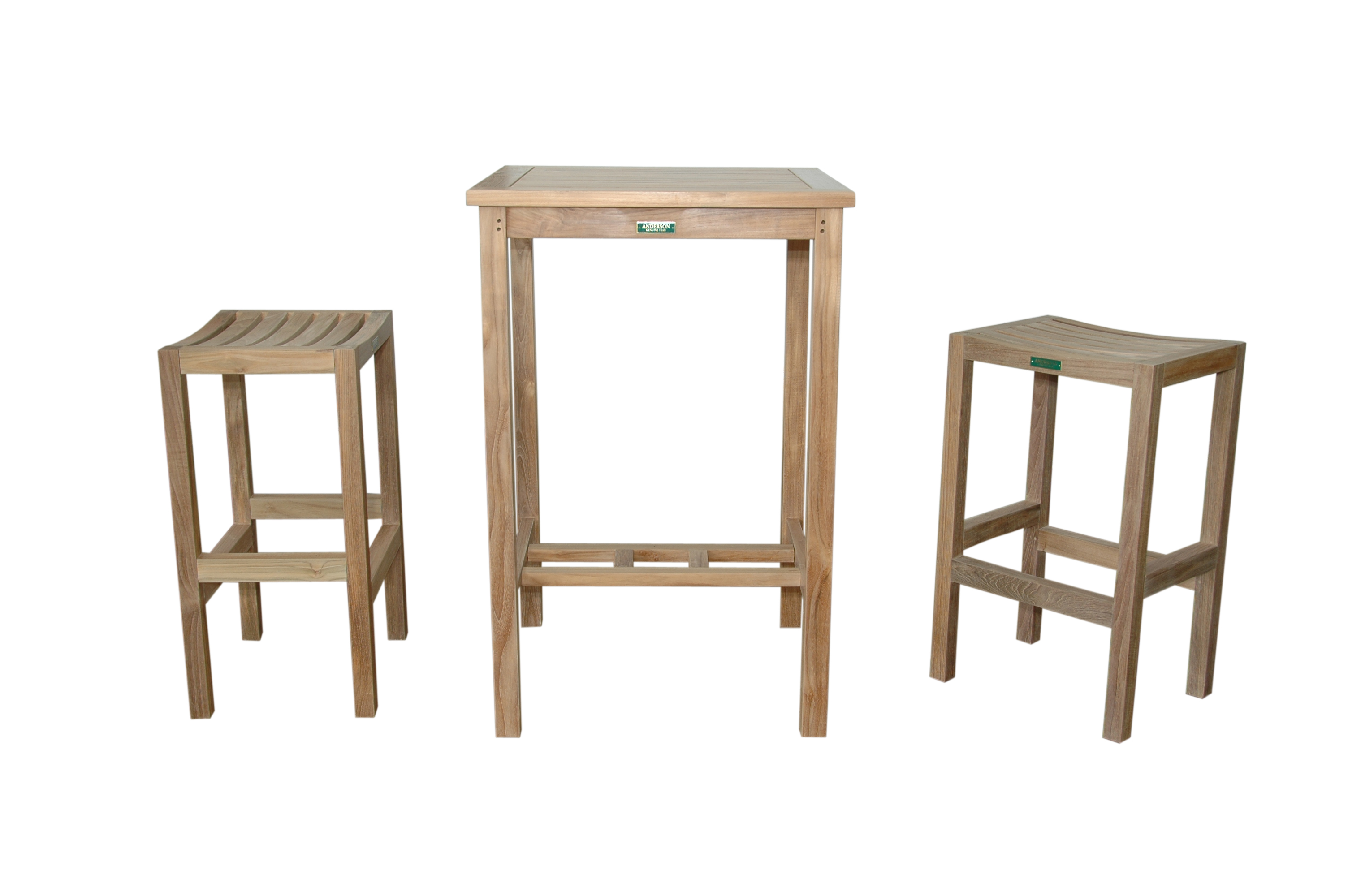 The perfect place to enjoy a cocktail or two; where else but outside!  Our teak bar height furniture line provides comfortable and unique teak bar tables and teak bar chair options for your patio or pool area. You're sure to find a refreshing solution for a small space or a corner of your patio that needs a more vibrant aesthetic. It comes with 1 Avalon Square Bar Table and 2 Avalon Bar Chairs.